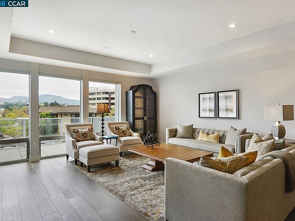 Urbane design & modern luxury are uniquely embodied in this impeccable 2 bedroom 2 bath plus office condominium, in the heart of downtown Walnut Creek. Built in 2015 with a contemporary & sophisticated style, this beautiful condo boasts a smart floor plan with approximately 1,893 of living space and a large private patio with views of Mt. Diablo. Gorgeous dining area & gourmet kitchen equipped with premium Bosch appliances make for elegant entertaining. Floor to ceiling wall of glass allows the natural light to drench the living areas and master bedroom. Enjoy luxurious easy living in this elevator building, single level unit that is walking distance to BART and everything this vibrant city has to offer.