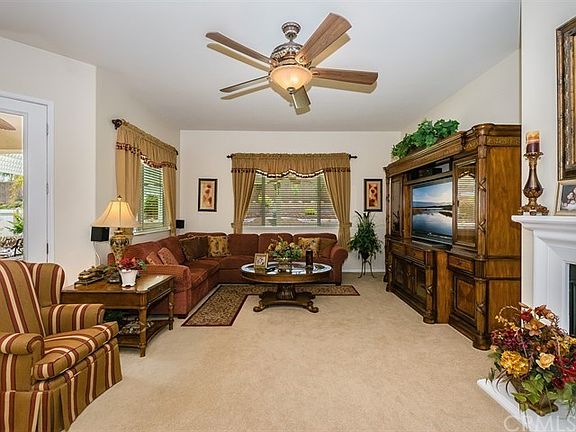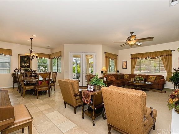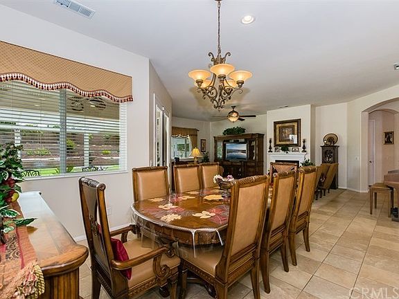 Stunning home on over 10,000 sf fully landscaped lot!! Del Webb home in the community of Solera offers everything you could possibly want! Leaded glass doors lead to Spacious open floor plan with two large bedrooms plus office under 9 ' ceilings! The front guest room offers guests comfortable living space plus private bath. The open office area can be used as a den or separate sitting area when entertaining. A spacious main master suite is set at the back of the home with peaceful views of the back yard. The master bath offers dual vanities with luxurious soaking tub & separate shower. The master closet offers tons of room with its 3 tiers of clothing rods! The main living area is surrounded by walls of windows, showcasing your fully covered patio with fans & lights. No shortage of fresh air with the abundance of plants, trees, shrubs & fruit trees! Enjoy fresh Red or Green Apples, Oranges, Lemons, Plums, Peaches, & Cherries right off your own trees! The kitchen is open to the main living area & offers a large country kitchen feel with the center island & ample pantry. Enjoy your huge utility room which offers additional pantry or storage space, as well as ample room for washer & dryer & all the comforts you could want in a laundry room. Exit to the garage - very roomy for 2 cars plus the golf cart. Meticulously maintained home - You will Love this one!! ***Directions from 10 Fwy at Oak Valley Parkway***Give your name and business card at the guard gate.