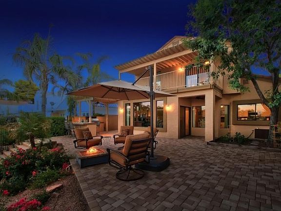 WOW! This home is AMAZING!! Remarkable design & upgrades, this 4 bdrm/3 ba home sits on an INCREDIBLE WATER FRONT LOT! Stunning kitchen boasts custom cabinets w/ Quartz counters & tile backsplash, upgraded GE Profile appliances (Fridge included), RO, & water softener. Vaulted ceilings, white oak HARDWOOD FLOORING, upgraded light fixtures & crown molding. Dual pane windows t/out & new sliding doors. New roof ('11) & NEW exterior paint ('14) Re-circulation pump. Garage sink. Master suite w/ 6 ft- extended jetted tub, & custom closet. 1 bdrm/bath down has steam shower & custom tile. Unbelievable backyard & waterfront balcony w/ ideal views of the lake!! This outdoor living space is perfect for entertaining, boasting extensive use of pavers, pergola, BBQ island w/ gas grill, mister, & gas FP.