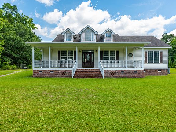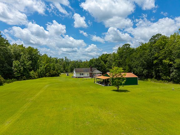 BRAND NEW HVAC BEING INSTALLED!! Stunning estate on 5 acres. This home is all one level with beautiful hardwood flooring throughout. The wraparound southern-style front porch welcomes you into a large foyer and leads you into the spacious living room with a cozy brick fireplace and custom vaulted tray ceiling. The kitchen features great counter and cabinet space with solid wood cabinets, eat-in bay window and a large walk-in pantry. The formal dining room connects to add a perfect space for entertaining guests. A hallway connects two spacious bedrooms and a secondary bathroom, and the owner's suite is across the hall. This space is perfectly designed with dual walk-in closets, walk-in shower, soaking tub and 2 vanities.The large laundry room is located off of the kitchen entry hallway and has built-in shelving and plenty of space for an additional freezer. The back of the home was a covered porch and a large patio. But wait, there is more. A large two-car detached garage has a separate workshop space where the owners have added a full kitchen and a half bathroom, plus a wrap-around covered porch and because the space is heated and cooled, you can enjoy it year-round. This is the perfect home to enjoy life in the country, but not too far in the country!!