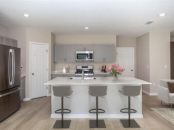 La Turquesa is the perfect family retreat: a two-story home with four bedrooms, two and a half bathrooms, and a private two-car garage. This home offers an open space designed for both relaxation and entertaining. The powder room off the foyer ensures all guests feel at home, while the spacious foyer opens to the main living and dining areas. Featuring luxurious vinyl plank flooring and a comfortable indoor-outdoor living area with a deck through sliding glass doors, it's a haven of comfort and style, perfect for gatherings. The kitchen includes stunning quartz countertops and sleek stainless steel appliances. Enjoy the spacious upstairs recreation room and the convenience of a laundry room just steps from the bedrooms. Did we mention the new washer and dryer? The master suite is a secluded retreat with generous his-and-hers walk-in closets, a double vanity, and a walk-in shower. Completing this spacious home is a smart thermostat with voice control and professionally designed landscaping it's the epitome of family luxury! Bradbury Creek's prime location puts you close to everything, from a convenient commute via US-17, US-27 or I-4, to everyday shopping at Posner Village and even world-famous attractions like LEGOLAND and Disney.
