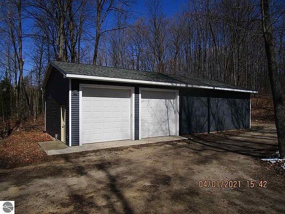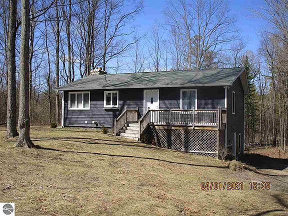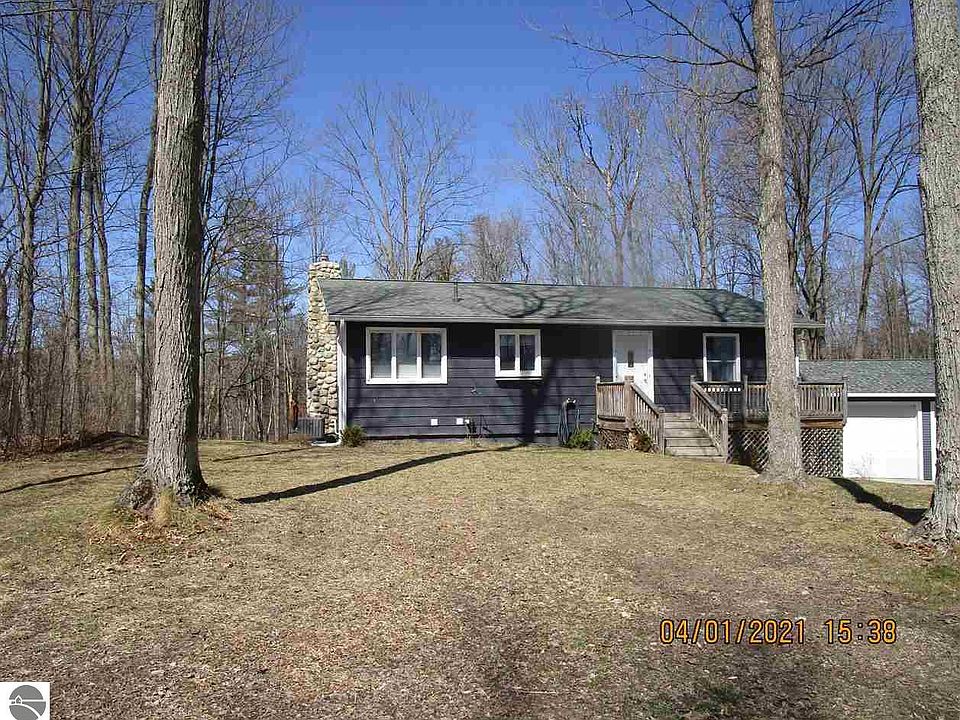 This is a must see! Nestled in the middle of just over 6 acres with rolling hills, 425 ft. of Anderson Creek at the rear of the property, a deer blind and a mixture of hardwoods and evergreens. The home has a beautiful fieldstone fireplace with an insert, and an open living room, dining room and kitchen with a large deck off the living room. The lower level consists of a bedroom, bathroom, and a recreation room or man cave. The 4-car garage is in excellent condition as is the home. New furnace and a/c in 2019. Nice location close to Kingsley and Traverse City.