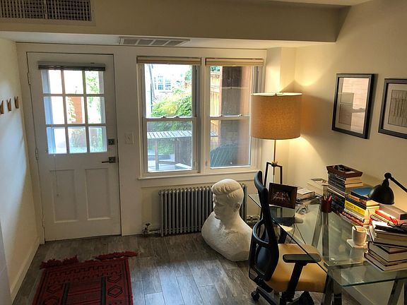 Recently renovated basement apartment. Private garden entrance with outdoor space, separate thermostat (central air conditioning and Nest heating control), large storage room with Elfa system, granite counter tops, new refrigerator, FrontPoint security system. All utilities included, including cable and internet. Pet friendly (cats and small dogs) Plenty of free street parking.