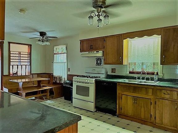 Nice size eat in kitchen with nook and open to game room with bar and out entry to large deck. Large first floor master with walk in closet. Living room offers gas stove that heats the whole house. Private backyard all fenced in.