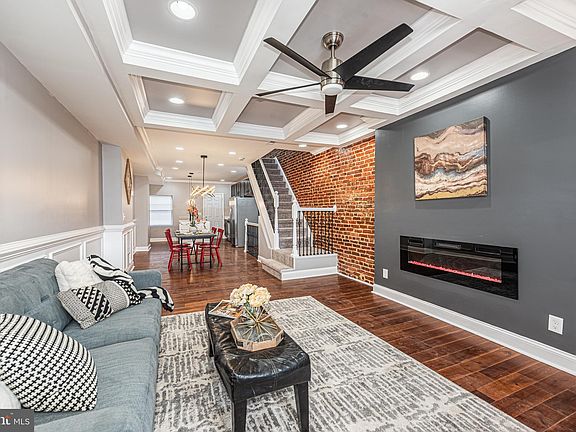BEAUTIFULLY DESIGNED NEW RENOVATION WITH 3 FINISHED LEVELS OF LIVING SPACE! Features include an open floor plan with wood flooring and exposed brick throughout the main level, a spacious living room with a coffered ceiling and electric fireplace, separate dining area, designer island kitchen with ss appliances & granite counters, upper level with 3 bedrooms and 1 full bath, a fully finished basement with a family room, 4th bedroom, and 2nd full bath, & a private rear patio that's great for entertaining! Pack your bags and move right in!