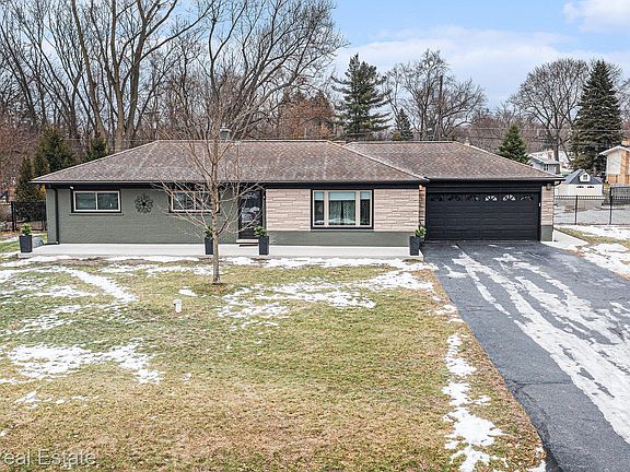 Welcome home to this beautifully updated modern ranch, freshly painted and move-in ready. This cozy yet immaculate 3-bedroom, 1-bath home offers a smart, functional layout with a fully finished basement—perfect for additional living space, a home office, or entertaining. Enjoy year-round comfort in the spacious three-season room, designed to be warm in every season and cool in the summer, featuring built-in floor fans and an electric fireplace that stays with the home. Step outside to a brand-new front porch, back patio, and driveway, all thoughtfully designed for relaxation and curb appeal. Situated on a half-acre, fully fenced lot, this property boasts professional landscaping throughout—no detail was overlooked. The outdoor space is ideal for gatherings, play, or simply enjoying the peaceful surroundings. The location is unbeatable: less than a minute to expressways offering quick access to anywhere, with food, entertainment, and lakes galore just moments away. This home is truly ready for a new family to love—offering comfort, convenience, and timeless charm in one perfect package.