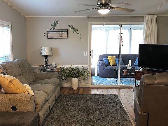 NEW LISTING . Home in desirable Active 55+ community of FOXWOOD LAKE ESTATES….NO LOT RENT… you own your land. Low POA of $63.00 per month. 3 bed/ 2bath FURNISHED home, tasteful decor.TURNKEY, super clean home, ready to enjoy life. ** Great home, furnished just bring your toothbrush and become a snowbird… *912 sq.ft** * Open floor plan *vinyl double pane windows with film for privacy and home cooling. *2”slat horizontal blinds * inside all newly painted * Wood laminate floors * primary king bedroom with walk-in closet * Second queen bedroom with large closet * updated bathroom vanities with Granite * 3rd bedroom/office with laundry, washer, and dryer stay * lanai, fully curtained for shade * New wood, trim around windows and doors * New water heater *AMS Metal roof * all appliances included * 3 ton air conditioner, still under warranty * New reverse osmosis water filtration system * Storage shed under carport * Non smoking home * immaculate, move-in ready pride in ownership * very desirable location backed up to open field and woods. ** Amenities in community of ***Foxwood Lake Estates*** heated, pool, hot tub, large clubhouse with many activities, dances,breakfast, entertainment, sauna, exercise room, Library, billiards room. Pickleball, bocce, shuffleboard, cornhole, basketball, horseshoes, beautiful, lake with walking Path and fountain and catch and release fishing, and SO much more. ** Will work with buyers realtor at 1.5%** Shown by appointment only. 630-915-4309