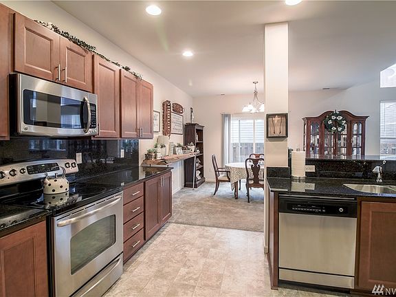 Enjoy this 2 story home conveniently located on Tumwater Hill. Modern kitchen with cherry colored cabinets, granite counters, stainless appliances, and breakfast bar. Open concept to dining and living rooms and slider that leads to low maintenance backyard. Soaring ceilings, white 2 panel doors and millwork throughtout. 5 piece master with walk-in closet. Come see today!
