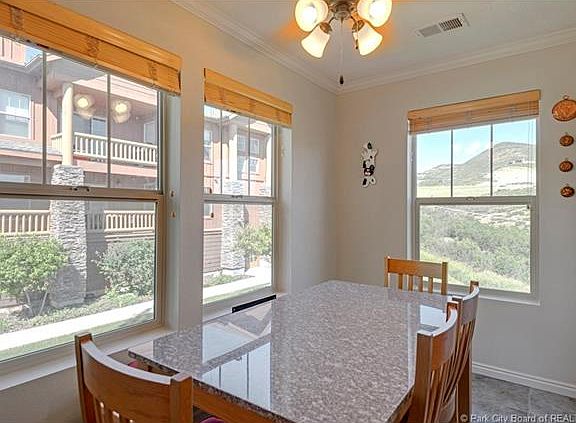 Stunning mountain views! Minutes from Deer Valley Resort's Jordanelle Gondola and the Jordanelle Reservoir. Web enabled lock and thermostat, granite countertops, crown molding, slate flooring, carpet and more. Comes with 2 parking spaces in secure building. Furniture is negotiable.