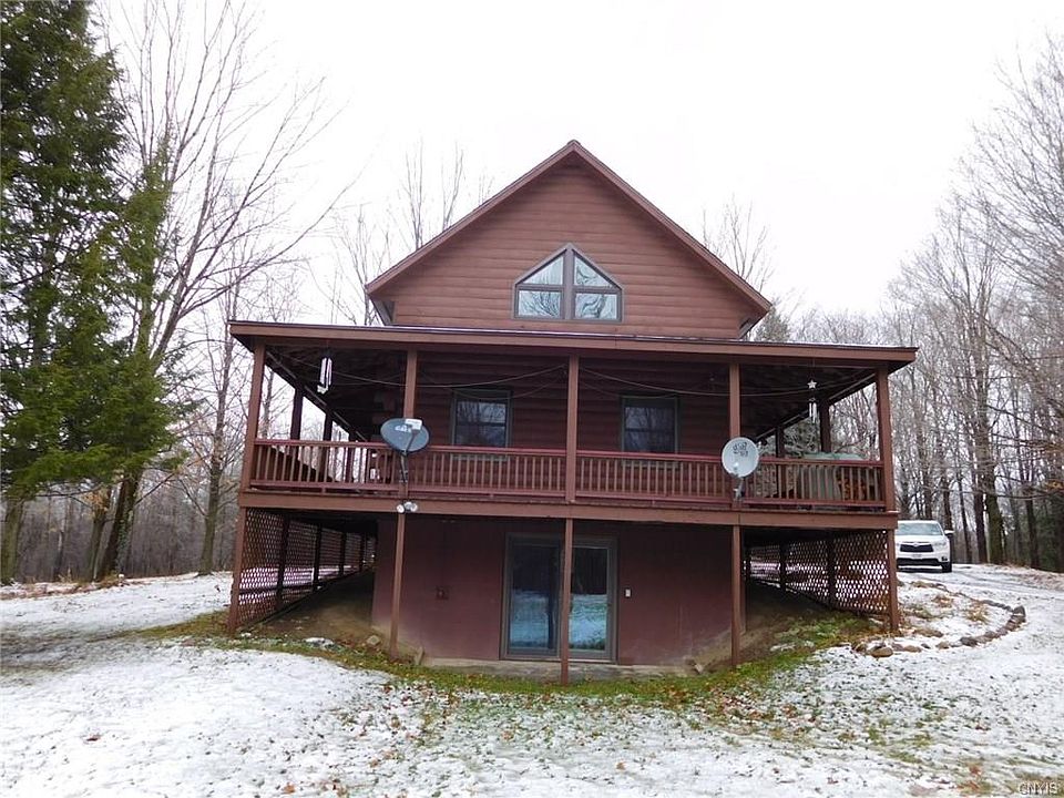 Very nice home that is private and park like setting. This is a very well maintained Log home with a full wrap around porch. Open floor plan and large bathroom, Basement has a sliding glass door for a full walk out basement. 12.11 acres that offers you plenty of privacy. Large 50 x 40 barn to hold your horses to toys. Also a run in shed next to 2 car garage.