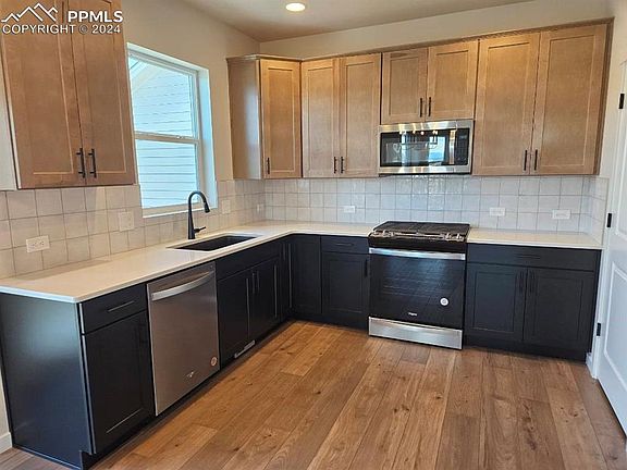 Ready in May. Capstone 2-story plan in the brand new Monument Junction neighborhood. 5 bedroom, 3.5 bath, 2 car garage home. Kitchen features split finish Shaker style cabinets, lower cabinets are black and upper cabinets in a pecan finish; Bianco Tiza Quartz countertops; pantry; and stainless steel appliances including gas range and refrigerator. Great room includes fireplace. Master bath showcases shower with seat and sleek frameless shower surround, double sinks, and large linen closet. The master bedroom features two separate walk-in closets. Finished basement hosts 1' taller ceilings and includes 2 bedrooms, 1 bathroom and recreation room. Home comes equipped with air conditioning, radon mitigation system, and smart home package. Home is located in a covenant controlled community. Seller incentives available.