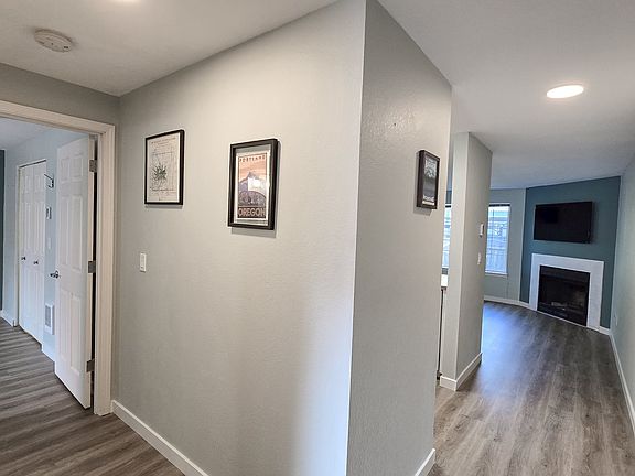 Come experience this cozy single-level condo located close to Bethany Village, about 10 min from Forest Park, and right across from PCC Rock Creek. The living room features a corner fireplace and an open concept with a dining room. The kitchen has recently had the cabinets refreshed. The whole home has had the flooring replaced with new LVP. Great access to outside with semi private patio. Washer and dryer located in the unit. The garage is located directly below the home. Convienent parking across from garage.