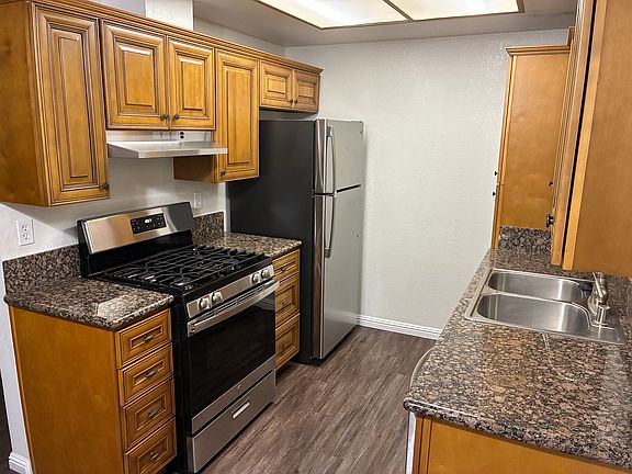 Spacious corner unit for rent month-to-month in a great location in Huntington Beach. Includes 1 car garage plus 1 outside assigned parking spot. Remodeled kitchen with granite countertops, new refrigerator, new stove and new dishwasher. The unit has lots of closet space, plank flooring, new plush carpet in the bedroom and laundry facilities on site. There is a large common area patio as well. Water & Hot Water & Trash Included