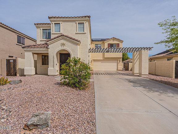 LARGE BEAUTIFUL HOME in the desirable Sierra Montana subdivision. This 4 bds. 2.5 ba. home is spacious with an open floor plan. OWNED SOLAR for low utility bills year around! Many new upgrades have been added including upgraded tile flooring and newer carpet in the bedrooms, water softener, new appliances, luxury vinyl plank flooring upstairs, barn door in master bedroom, newer curtains, wine refrigerator and island in the kitchen, and shed in back yard. Enjoy relaxing outside under the covered patio overlooking a green lush backyard. A must see!