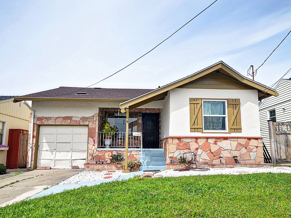 With 1387 sqft open floor plan and excellent location close to shops and restaurants, this home is a must-see. If you are searching for a project, a few cosmetic touches will transform this home from a humble abode into a luxe property you will be proud to call your own. There are two bedrooms and two full bathrooms, plus a light-filled living room and a dining area. There is a huge family room with a soaring vaulted ceiling. Step outside to the good-sized deck where you can take in views of the low-maintenance backyard. For the avid gardener, there are some fruit trees and plenty of room to plant your favorite blooms. Extra features include a one-car garage, brick feature walls throughout and a statement pendant light in the dining area. This must-see home is located just moments from the freeway and only 7 minutes from Bayfair Bart Station, local shopping and restaurants.