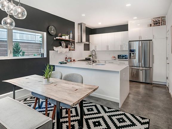 No shared walls with this modern free-standing home on Beacon Hill. Enter on polished concrete floors that spill through the lower level great room, which is anchored by a spacious kitchen with white cabinets, stainless steel appliances, subway tile backsplash and quartz countertops. 2 bedrooms on the second level, separated by a full bathroom and utility room with washer, dryer and tankless water heater. Watch sunrises from the balcony of the third-floor master retreat, which also features a double shower and large walk-in closet. All this plus a rooftop deck with shade and turf, carport, security system, barn doors, radiant heat and air conditioning, in a central location close to light rail, bus line, Mountain to Sound trail, I-5 & 90. No HOA dues & all appliances stay!