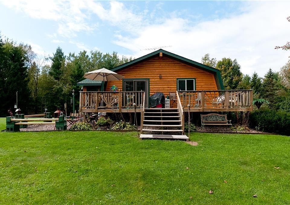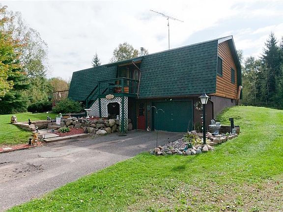 Nice setting on 13 acres with a mixture of woods, apple trees and open fields. This log sided home offer lots of updates including new roof in 2016, some new flooring, newer windows, siding and drilled well. Attached one garage and an additional one car detached garage with finished insulated loft area. Home offers 2 bedrooms, 2 full baths, cathedral wood ceiling in living room, family room and plenty of great views. Property also includes a small cabin/guest area.
