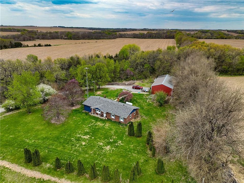 Country living, set back from black top road, with Rural Water and 60x30 machine shed. This ranch style brick home situated neatly on 1.4 acres, full concrete basement, with new roof and siding and gorgeous views. 4 bedrooms, bonus room and 1.5 bathrooms on main level. Full unfinished concrete basement with unlimited potential! USD 415 , blacktop road accessible and country living bliss!