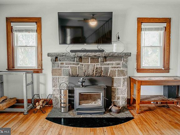 Beautiful 5 bedroom, 1.5 bath stone cape cod on .68 acres. Lovely front porch, hardwood floors throughout on 1st and 2nd floors, 1st floor laundry room, newer oil furnace (5yrs), water heater (2yrs old), replacement windows, metal roof (2019), new well pump (4 yrs old), newer septic (2009). Granite counters and tile backsplash in kitchen with gas stove, breakfast nook, and a separate dining room. Beautifully renovated main bath and central air too! Wood stove in living room and pellet stove in lower level, oversized 2 car garage with storage on 2nd floor, spacious level back yard and shed!