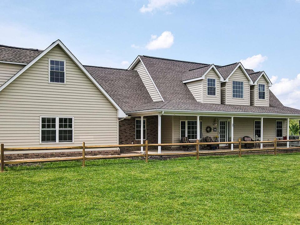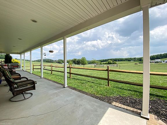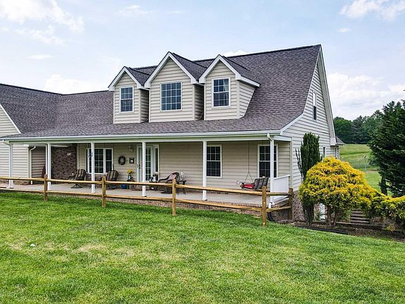Beautiful spacious Cape Cod nestled in the Blue Ridge Mountains. This property has everything you'd want from a house and need for a mini-farm. Sunlight pours into the living room highlighting the vaulted ceilings and majestic gas log fireplace that rises to the open loft area above it. Living room flows into the open dining room and kitchen. Hardwood flooring adorns most of the main level. Large primary bedroom and en suite that boasts a roomy walk-in shower. Upper level has two large bedrooms, one with private bathroom and the other a private entrance from the driveway. Basement is finished with a large rec room and double doors to the outside. Wonderful Floyd County views from the covered front porch. Two front pasture areas feed into a smaller run with small barn and lean-to shelter. Water and power is available to this area. Two more fenced areas with coop and small barn for either chickens or sheep. The entire property is fenced and ready for you to start living your dream.