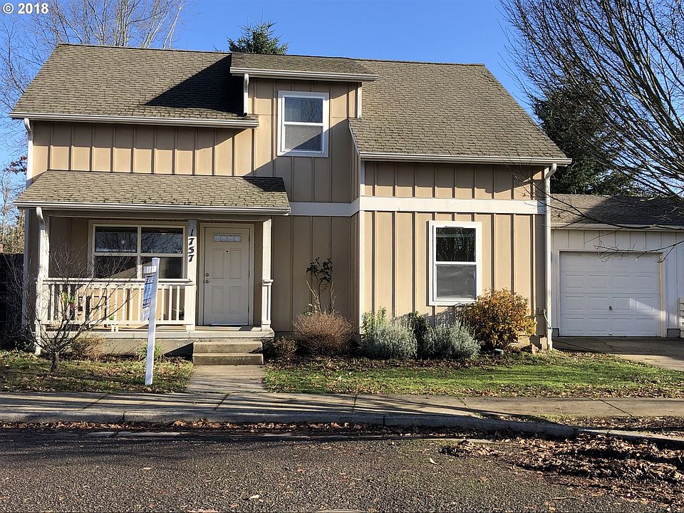 Well maintained home with one bedroom down and two very large bedrooms up. 11X6 bonus area inside bedroom for hobby, study area or HUGE closet. Open floor plan with nice flow from Living Room to Dining Area, into the Kitchen (appliances included)! Home has Laundry/Mud Room inside, great separation of space. Vinyl windows, detached garage, country front porch. Close to Autzen, school, park, MORE! Great value