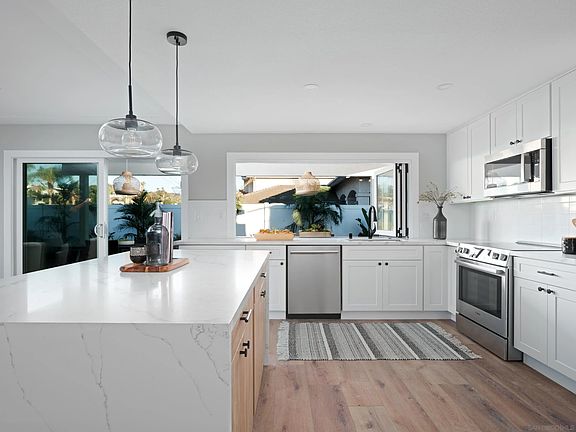 Beautifully remodeled home on HUGE corner lot in Bay Park! The interior has new flooring, cabinetry, quartz countertops, stainless steel appliances, brand new central AC system and much more. This turnkey home offers a spacious and open layout with a kitchen and entertainment area that sits in the back of the house and overlooks the private and fully landscaped backyard. Four bedrooms upstairs include a well-sized master bedroom with a large deck overlooking the fenced in backyard. The fifth bedroom is downstairs and can also be used as a dining room, office, or play area. Don’t miss this amazing move-in ready home on one of the best lots in Bay Park!