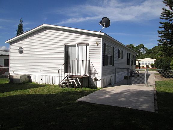 Newer home (built in 2005!) in well established VERY desirable 55+ community boasting one of the largest floor plans in the park. You own the land so NO LOT RENT. Fully furnished with new accoutrements throughout, this home is move-in ready! Features include detached storage shed, chain link fenced backyard, and energy efficient EcoSmart tankless waterheater. Optional HOA membership grants use of pool, shuffle board, tennis and clubhouse with active weekly social events including holiday dinners and dances. Awesome location 5-10 minutes away from the Indian River, Atlantic beaches, shopping, Melbourne International Airport, I-95, medical facilities, churches, etc. THE perfect retirement destination or winter house for Snowbirds!