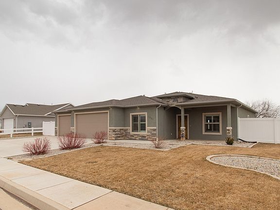 This very well cared for home with 4 bedrooms & 2.5 baths in the nice quiet neighborhood of Hunter Glen. It is a one story home with an open floor plan & vaulted ceiling for that spacious feeling. It has a bright kitchen with lots of tall white shaker style, soft close cabinets, walk-in pantry, big island, & quartz countertops. Main bath has separate shower and soaker tub, double vanity, his & her closets. White plantation shutters throughout. The backyard is fully fenced & private with a view of the mountains. Covered Patio. It offers a fire pit to hang around during those chilly nights. Home is fully equipped with an automatic sprinkler system for low maintenance. Wired for satellite/fiber optic internet. The spacious 3 car garage has enough space for all your needs. Room for an RV too.