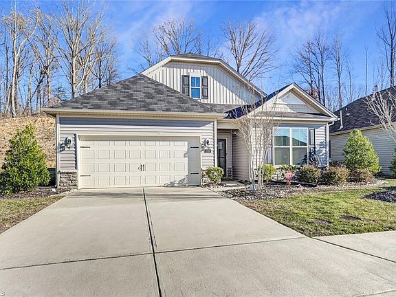 One level living and all the exterior yard work is included! This newer home features 3 bedrooms including an en suite primary. Stylish kitchen is highlighted by an open floor plan with subway tile back splash, stainless appliances including a gas stove and a large island. Luxury vinyl plank flooring throughout for easy care. Enjoy the outdoors with a closed in patio room and paver patio with privacy galore HOA covers yard maintenance and home includes a sprinkler system. This one is perfect for those considering downsizing, first time buyers, or anyone looking for low maintenance living in a community with a clubhouse, walking trails and pool coming soon! Convenient location to Winston Salem, Kernersville, Greensboro and High Point. Come see it today!