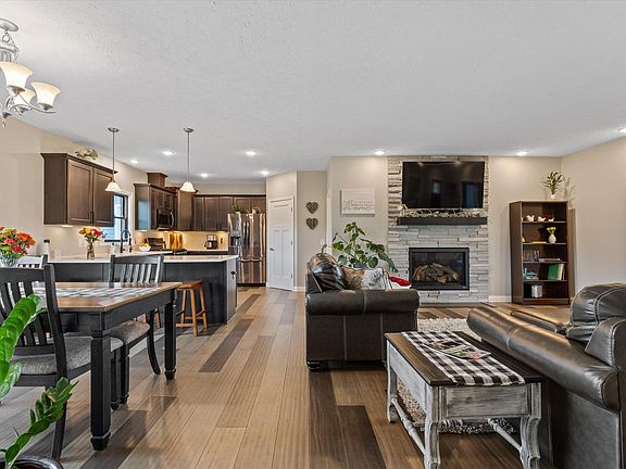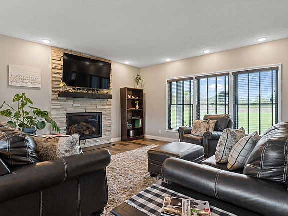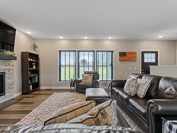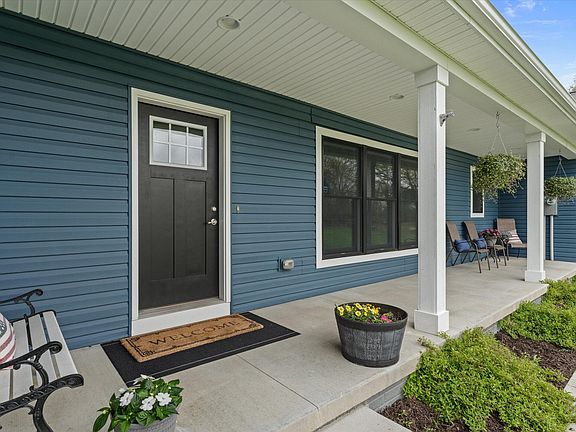 10 Acres. Modern ranch home built in 2019 offers a rare opportunity to embrace rural living yet close to travel, work & shopping conveniences. The long lane takes you to this lovely home with a covered front porch & 3 1/2 stall garage which is insulated & heated. Step inside & you are greeted by a cozy open concept. The main living room has a fireplace with a stone backdrop, bamboo flooring that flows into the dining area, kitchen & adjacent mudroom, laundry & 1/2 bath. The beautiful kitchen offers quartz countertops, a spacious pantry & breakfast bar. You will enjoy nothing but nature views from any room in the house. Split bedroom floor plan, daylight windows in the lower level which has 9' ceilings, is drywalled & plumbed for a bath & a wet bar. Composite deck new March of 2024