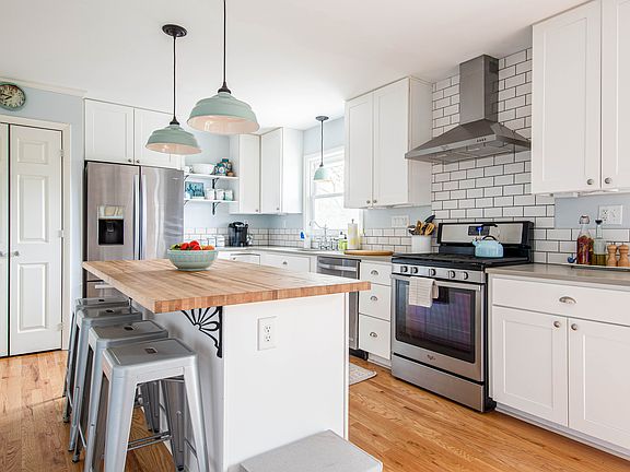 - Kitchen Features: Breakfast Bar, Pantry, Kitchen Island, Solid Surface Counters, Cabinets White