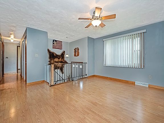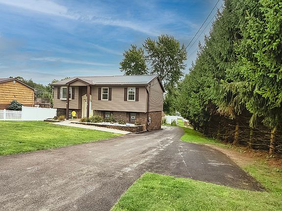 Enter this home from the front covered porch to an entry offering a space to greet your guests. LR w/bow window, newer laminate floors (throughout main level) and natural light. DR is steps away and could be opened to the KIT. KIT includes appliance package, slider to newer covered deck. Main bath is located near the beds. Owner's bed is spacious with ample closet space and powder room. Remaining 2 beds also offer newer laminate flooring. The lower level of this home offers a fantastic game room with gas, stone fireplace, a storage area and sliders to the back patio and partially fenced yard. The laundry room/storage/mechanics room, powder room and double car integral garage round out this lower level. The rear yard is fenced on two sides and the third is protected by a row of trees. The shed will remain with the home. Recent updates include Gas, Forced Air Furnace - 1 year, Hot Water Tank - Months, Siding - 10 years, Windows - 15 years, Roof and Porch/Deck area - 3 years.