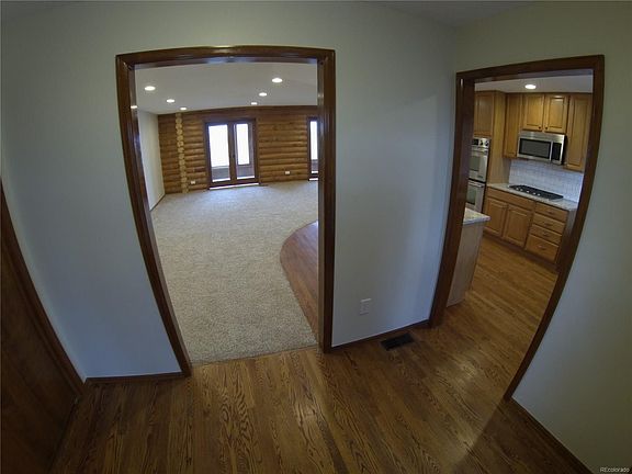 Log Home on 5 acres, fully remodeled and ready for a new owner. It has all the charm of a cabin in the mountains with modern conveniences throughout. Walk in to the large entryway and you are greeted by interior log walls and wood floors. Enter the spacious and central living room with new carpet and lighting, or follow the wood floor to your right into a fully remodeled kitchen with beautiful new cabinets and granite counter tops and island, and a brand new set of stainless steel appliances, including double oven. The subway tile backsplash and SS double sink basin bring it all together to create the perfect modern country kitchen. From the living, there are 2 bedrooms and a large bath on the south wing, and double French doors leading to a large sunroom facing west. The Master suite is off the NW corner of The living, and features French doors, walk in closet, refinished private 3/4 bath, and access to sunroom. Also 2 car attached garage, finished walk out basement with 1/2 bath.