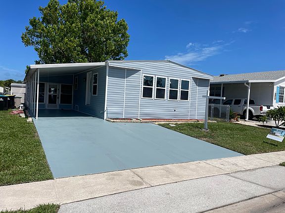 55+ community where you own the land. Welcome to this cute and affordable home in NE Palm Bay! This charming house features an open floorplan with 2 bedrooms and 2 full bathrooms. The updated bathrooms, upgraded flooring, and new kitchen make this home move-in ready. Enjoy the natural light from the new windows and the fresh look of the new siding and freshly painted interior. The house also boasts new electrical outlets, a storage shed, and a laundry room inside for convenience. With walk-in closets, a newer water heater, and a new metal roof, this home has everything you need. The large family room and formal dining area provide ample space for entertaining. Plus, the new drywall throughout and new subfloors add to the overall appeal of this lovely home. Don't miss out on this fantastic opportunity to own a beautiful property in a great location!