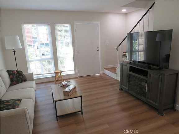 Up for sale is this beautifully remodeled 2 bedroom and 1.5 baths townhome in the Gramercy Park community of Anaheim. Features include all new interior paint with scrapped ceilings t/o, all new decorator vinyl floors throughout, all new baseboards and door trim t/o, all new electrical plugs and switches t/o, remodeled kitchen and baths, new ceiling fans t/o, new window treatment and screens, remodeled utility room with newer washer and dryer, huge patio area with herb garden and citrus trees and a spacious two car detached garage with opener at the rear of the property. Also included is a new $11k hvac system and a brand new refrigerator. This townhome is convenient to the 5&91 fwy's and Disneyland. Serviced by Anaheim school district. Be sure and show this property to your fussy buyers. You won't be disappointed!