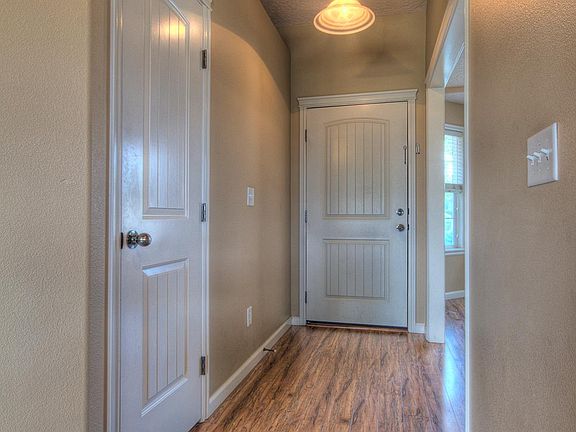 Single level home in great location. Stone accents & covered front porch. Laminate flooring in entry, kitchen utility, family room & hall. Wood wrapped windows in living room, kitchen, eating & family room. 2" blinds throughout. Kitchen has corner pantry, breakfast bar, vaulted ceilings, lots of cabinets and counter space. Master bedroom is large & has walk-in closet, dual sinks & garden tub. Refrigerator, washer/dryer included. South facing backyard w/no neighbors behind.