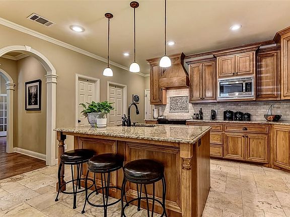 Spectacular Custom home 1 ac. Classic arched doorways are delightful. Hand scraped hardwood and travertine flooring throughout. Generac natural gas generator backup power supply. Open kitchen, travertine backsplash, granite countertops, stainless steel appliances and large kitchen island with sink. Big walk-in pantry. Living area, Gas FP stone and wood surround. Beautiful ceiling wood work brings warmth and character. Sunroom area leads to an outside covered entertaining area. Spacious master is split from other bedrooms. Master bath is amazing, large soaking tub, separate vanities and a gorgeous walk in shower. Plantation shutters, Tilt sash vinyl windows, recessed lighting, crown molding, solar screens, security system, sprinkler system. Roof and gutters 2021. Hot water heater 2019. All wet areas have granite countertops. Backyard is a blank canvas for you to design your dream area. The 23x24 garage has a workbench. Additional 18x23 garage, roll up door and is heated and cooled. 2022-06-02