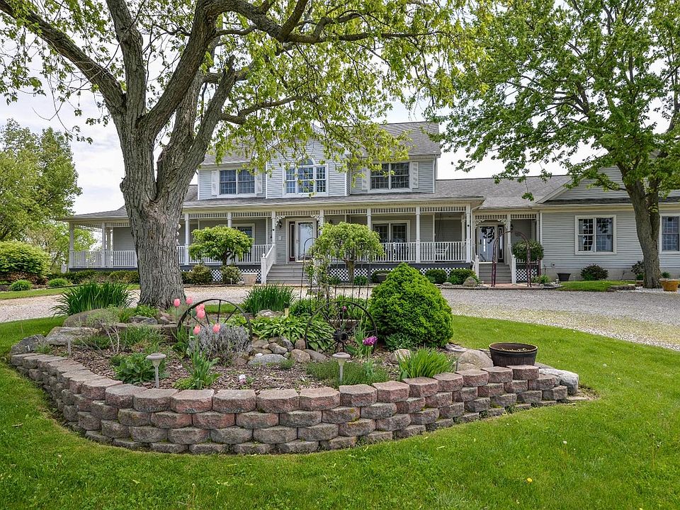 On 11 sprawling acres of park-like grounds, with the Little River Raisin meandering through the front of the property, sits an impressive Two-Story with tons of space for the growing family! Meticulously maintained, this lovely abode awaits its next life-chapter! It features a large great room with tray ceiling and fireplace, formal dining room and cozy den. Its heart-of-the-house kitchen has large center island with breakfast bar and tons of storage. First floor master suite, with French door to deck, and master bath with dual vanities, jetted tub and walk-in shower, is terrific. Upstairs are four additional bedrooms and two full baths. The finished walk-out lower level has a family room with fireplace, recreation room, exercise area, bar, and tons of storage! Relax on the spacious front porch or throw a summer bash in the backyard with beautiful in-ground pool! Huge outbuilding has large loft, gas, electric and water and is perfect for a serious workshop or top-notch car storage.