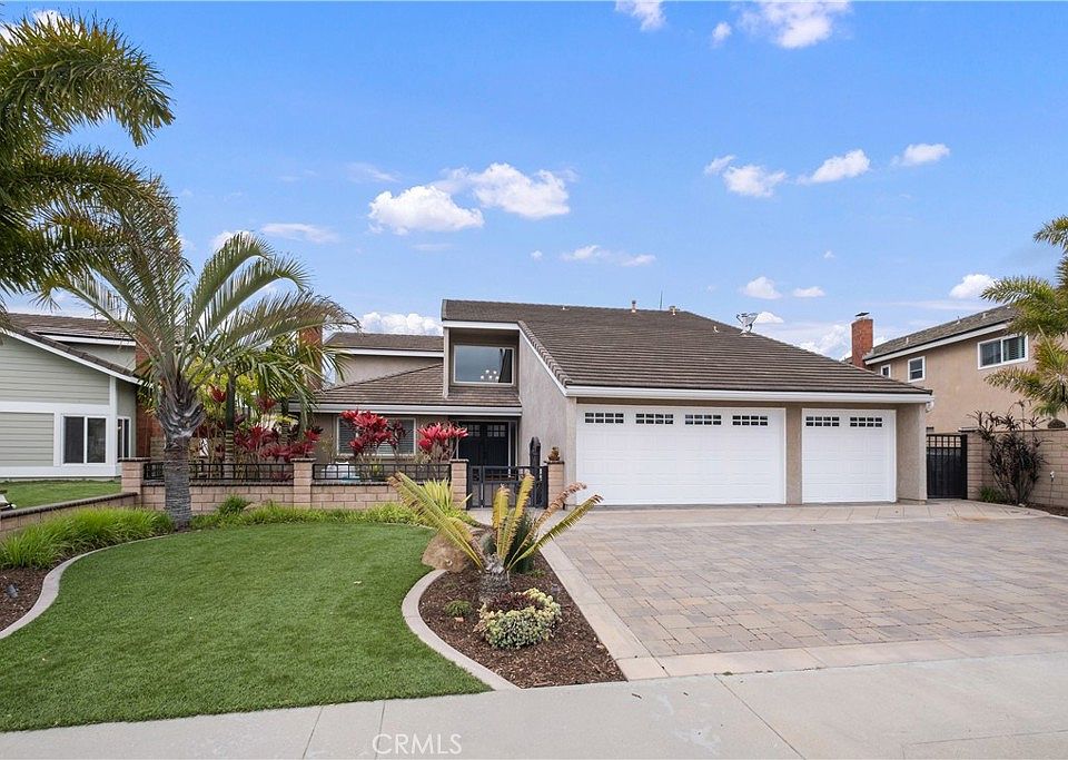 Rarely do you find a home that has been impeccably upgraded with such quality and detail. As you enter you are greeted by a stunning sweeping staircase and wainscoting in the entry. The living and dining rooms boost gorgeous hardwood floors and a warm fireplace. The chef's kitchen was pushed out two feet creating a larger space with a center island. The kitchen is open to the family room with a breakfast table, custom built-ins and a second fireplace. There is a full bedroom, bath and laundry room on the first floor. Upstairs you will find a huge primary suite with walk-in closet and spa-like bathroom retreat. There are two additional spacious bedrooms and a bath on the upper level with great storage and custom closet organizers. The backyard is your own private oasis with a covered patio, built-in barbeque entertaining area, firepit and large spa to relax in. Now we can't forget the 3 car garage that has finished walls, custom cabinetry and epoxy floors, this is every man's dream! Ideally located on an interior cul-de-sac with easy access to the wetlands. With large lots and no HOA the "Landing" tract offers the best of Huntington Beach! (Please see listing supplements for detailed upgrades list.)
