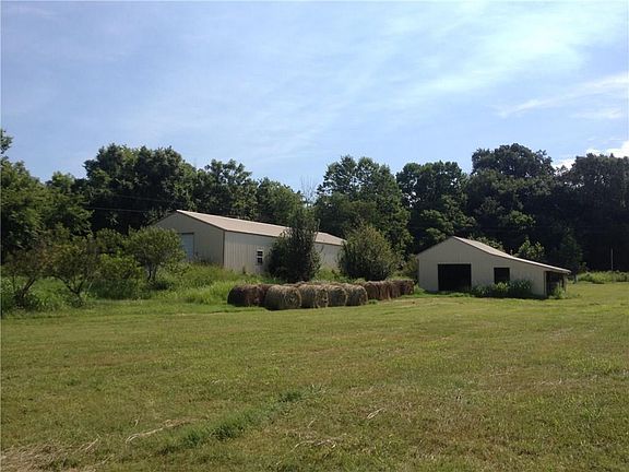 44 with a 36 ft by 70 foot insulated shop building. Beautiful Little Sugar Creek flows through the property. Shop has full bathroom, 10 by 16 foot overhead doors, concrete flooring. Barn and small pole barn/shed. Outstanding well with 3 yard hydrants plus water to shop. Half the property is open and half is wooded. Great home building site with electrical panel on site. flood cert and perk test completed and available. Great cell service on hill at home building site