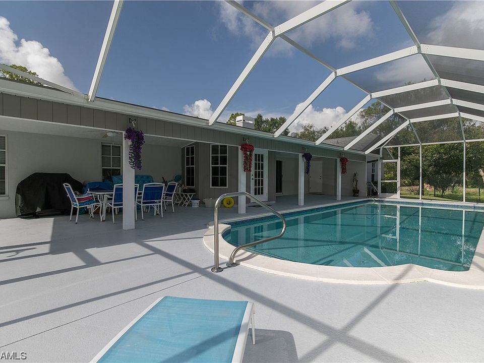 BEAUTIFUL ALVA POOL HOME PRIVATE ROAD - NO DAMAGE FROM HURRICANE IAN The pride of of the original owners shows with lots of updated features including a large kitchen with granite countertops and a breakfast nook, bathrooms with quartz countertops, a fireplace, vaulted celiings, crown molding, chair rails, and a jetted tub in the master bath. The 14' X 36'pool and surrounding deck have been re-finished, and the upgraded screen enclosure features a picture-frame view of the well-manicured back yard. The covered lanai has a stucco finish for durability. Tons of storage- the master suite has two walk-in closets, bedroom 2 has a walk-in closet, there are 2 hall closets, a 2-car garage with extra space and a 16' wide, 8' high overhead door, and an 18' X 24' shed out back. The shed has an overhead door to allow easy storage of mowers and toys. There is also a 24' X 24' detached carport. Bedrooms 2 & 3 share a Jack-n-Jill bathroom, and bedroom 4 is located next to the pool bathroom. Front room could become an office or den. There is a 2/4-ton AC system with advanced features. The pond out back is cross fenced and stocked for some fishing entertainment! COME SEE THIS ONE TODAY!