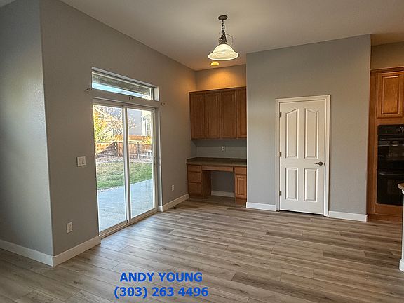 Beautiful REMODELED Ranch style 3 Beds 2 Baths Office 3957 Sq ft (2,247 sq ft finished & 1710 sq ft unfinished basement) 3 car tandem attached garage backup to playground. Fresh interior paint, new LTV flooring thru out the home. Great room w/ built in shelving & fireplace open to Kitchen & breakfast nook room with Judy desk area . Kitchen has corian countertop, stainless/ black appliances, & Kitchen island open to formal dining. Master bed with covert ceiling & 5 pieces master bath with large shower & bench seating, & access directly to the Large concrete patio backyard. Central A/C. Main floor laundry room (Washer & Dryer hook up) with wash sink. Access to Reunion Recreation Center. Minutes away from E470, Hwy 76, Hwy 2, DIA, restaurants, grocery store, park & more! NO MMJ, One Cat/ One Small Dog under 20 pounds will be considered. AVAILABLE NOW! For info or showing, please call ANDY YOUNG @ (3O3) 263 4496. Thank you.