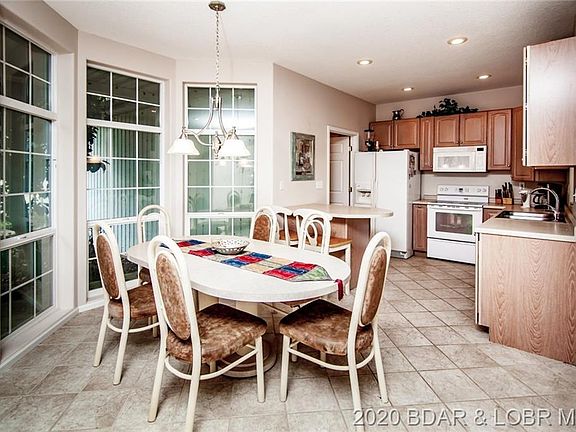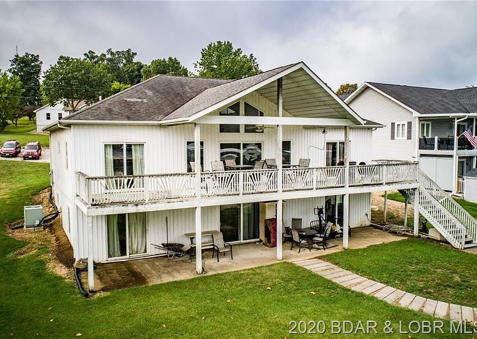 Spacious Lake Front home in Gladstone Cove. Gentle lot with no steps to the dock. Wide open View of the cove. This home features 3 bedrooms, 2 full bathrooms, all main floor living, with 2nd Kitchen, family room and Bedroom 4 & 5 along with 2 bathrooms in the lower level. There is a spacious covered deck off the Living room and Master bedroom. Off the Lower level family room is a patio. and gentle walk to the concrete dock. So much home for the money, With a little TLC this will make one terrific home! (1 bedroom is non conforming). Dock Elec is being updated, and the home has a new roof. Home owner kept the price down as he realizes the home and dock needs some TLC.