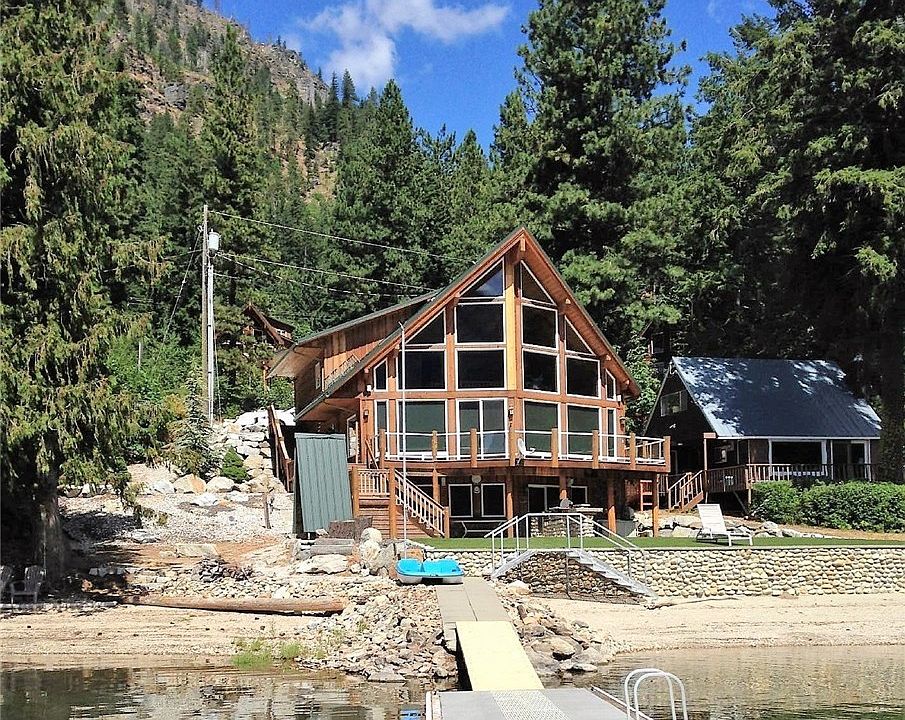 Quintessential mountain/lakefront home. Tastefully constructed w/natural materials such as, cedar, pine, river rock, slate, tile and granite. "Open" floor plan, w/high ceilings & a bank of windows that span entire living space, maximizes your breathtaking view of the lake, sunsets and the Cascades. Just feet away from lake. Back yard is "no maintenance" artificial turf & sits on level ground retained by a river rock bulkhead. Dock sits on NW corner of Lake Wenatchee. Being sold fully furnished.