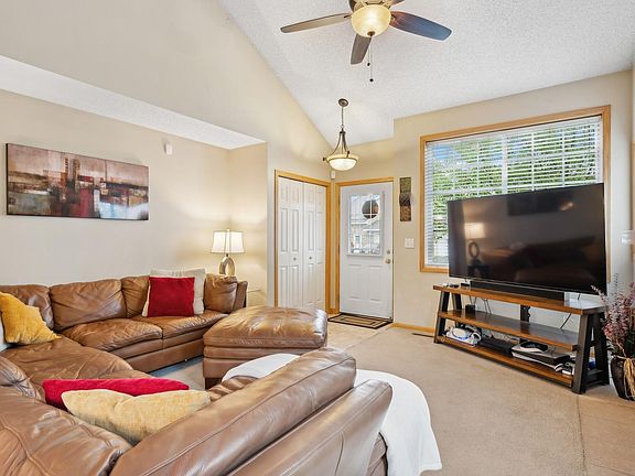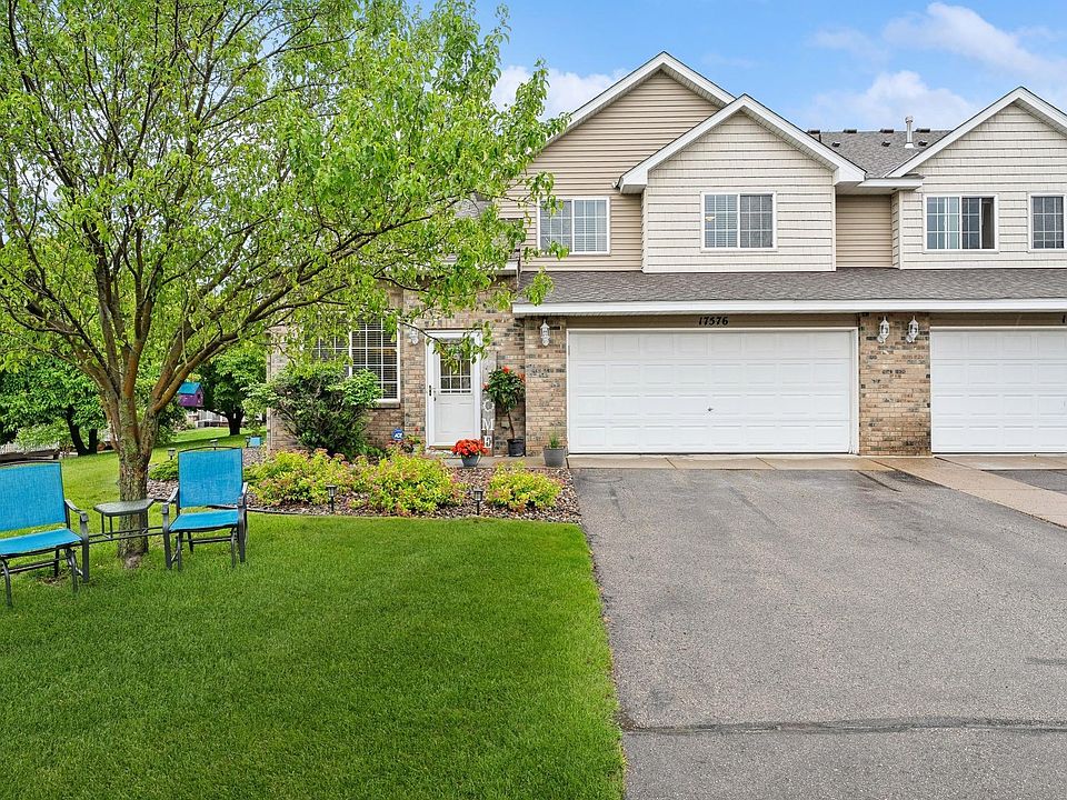 Welcome to your dream home! This end-unit gem boasts two+ garage stalls. The neutral color palette invites you to move right in and make it your own. Enjoy sunlit spaces and open layout. As you step inside you are greeted by a 2-story vaulted living room, flooded with natural light. Cozy up by the fireplace on chilly winter nights. The main level features updated kitchen with stainless steel appliances, and a half bath, ideal for guests. Imagine entertaining on your private walk-out patio, where grilling and relaxation await. Escape to the upper level primary suite, where you’ll find oasis after a long day. It’s not just a bedroom—it’s a retreat! Set up your home office or create a cozy sitting area for unwinding with your favorite book. The bathroom offers dual vanity, a separate jetted tub, and a shower. There is no shortage of closet space, too! Need space for visitors? The second level also includes a nice guest bedroom, and laundry with new washer/dryer. Make it your home TODAY!