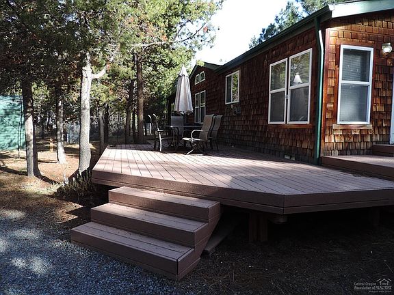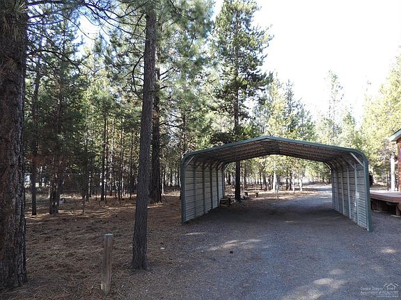Quiet, very desirable neighborhood on paved road & closer to Paulina/East Lakes than most La Pine properties, this double-wide has fantastic Trex deck out back, 2 storage bldgs. & carport. Electric Heat Pump with A/C, private well & standard septic. Nice setting amongst the pine trees & plenty of space to build a shop if desired. Ideal location for snow-mobilers & fishermen who want quick commute to Newberry Nat'l. Monument, just take the back road up!