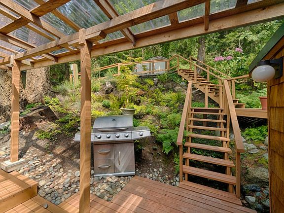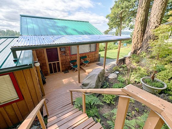 A magical place! Imagine your rocking chair on this covered deck enjoying an unparalleled view of Skagit Bay; eagles soar, fish jump, kayaks paddle! This sweet 2 bedroom cottage has been dearly loved; it's comfortable enough for daily living! Many children have run up and down the stairway to 100' of beach! Pristine natural landscaping & double size lot; another structure can be placed above or extra parking. Located at the end of the street & boarders a beautiful ravine. Leased land; come see~