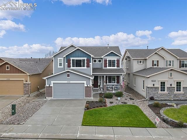Welcome to this stunning home located in a desirable Monument community! Plenty of extra space with an unfinished basement! You will love this home from the minute you pull up. The entire property has been meticulously maintained, and the yard is no exception. This home has a tandem 3 car garage and a covered front porch to enjoy the upcoming summer evenings. Inside, you are greeted by gleaming laminates throughout most of the main level. The main level features a large formal living/flex room, a powder bath, and an amazing open concept. The kitchen/dining/family room areas are truly the heart of the home. The gourmet kitchen has granite countertops, double ovens, a gas cook top, and Butlers pantry with large walk in pantry. This is the perfect place for a coffee bar. The living room has built ins, a gas fireplace, and is so bright and spacious. The adjacent dining area can accommodate a crowd for your summer BBQS. The main level also features a mud room with custom built ins. The upper level has amazing views of Mount Herman (which offers many nearby hiking and biking trails), as well as the bedrooms, a laundry room with plenty of cabinetry/storage/folding space, and a loft. The upper level master suite is truly a show stopper. It also features a spa-like master bathroom retreat. There is an unfinished basement which provides plenty of storage space, or finish to your liking for additional living space. The private backyard is a garden oasis. There is a rain catchment and 5 raised and irrigated garden beds with organic dirt. There is an oversized patio for entertaining. This home has so many extras including a whole home humidifier, central air, a reverse osmosis water filter at the sink, and more! This home is conveniently located close to Downtown Monument (for Farmer's Markets, Concerts, Restaurants and shops), as well as Monument Lake. An easy commute to both the Springs and Denver.