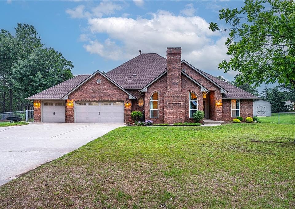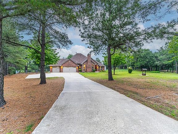 Gorgeous 1.86 wooded acre lot mol with custom-built home plus fabulous curb appeal! So many updates over the past 4 years including: Kitchen Aid microwave, convection oven and cooktop, Bosch dishwasher, gutters, 10 windows, garage doors & openers. Heat & Air in 2019. Disposal in 2023. Extra large living room w/cathedral ceiling, stunning wood floors, fan & fireplace w/gas logs. Generous main bed w/door to private patio, walk-in closet, crown & fan. Main bath with granite, 2 sinks, make-up vanity, corner tub & shower. 2nd and 3rd beds on opposite side of home share hall bath w/granite & tub. Formal dining with crown molding. You will love this spacious utility room with tons of storage and walk-in pantry! This home has been loved and well maintained! Large storage building and chicken coop in backyard! Backyard is fully fenced with 4 gates and so many mature trees! 3 car garage with storm shelter in garage floor! RV hookup outside on West garage wall. This is a must see!