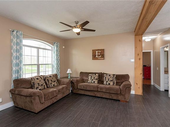 Beautiful updated home w/ 9' ceilings on main level & very open living room/kitchen area in the center of the home. An amazing kitchen w/white gloss cabinets w/lots of drawers that are soft close & a pantry area w/pull outs. Counter tops are granite. Sharp stone backsplash highlights the stainless steel exhaust system. Ceramic wood plank style floors carry through the home. Mail lvl Master has dbl-sink vanity w/Granite counters. The other side of the home has 2 bedrooms & a full bath w/ceramic tile floors & granite counter tops. Basement is finished and has a Master suite w/Ingress-Egress window,massive closet space & a master ba w/Walk-in tile shower & so much more. Also a large Fam.Rm. GARAGE is 24x48 w/10' ceilings. All on .61 Acre